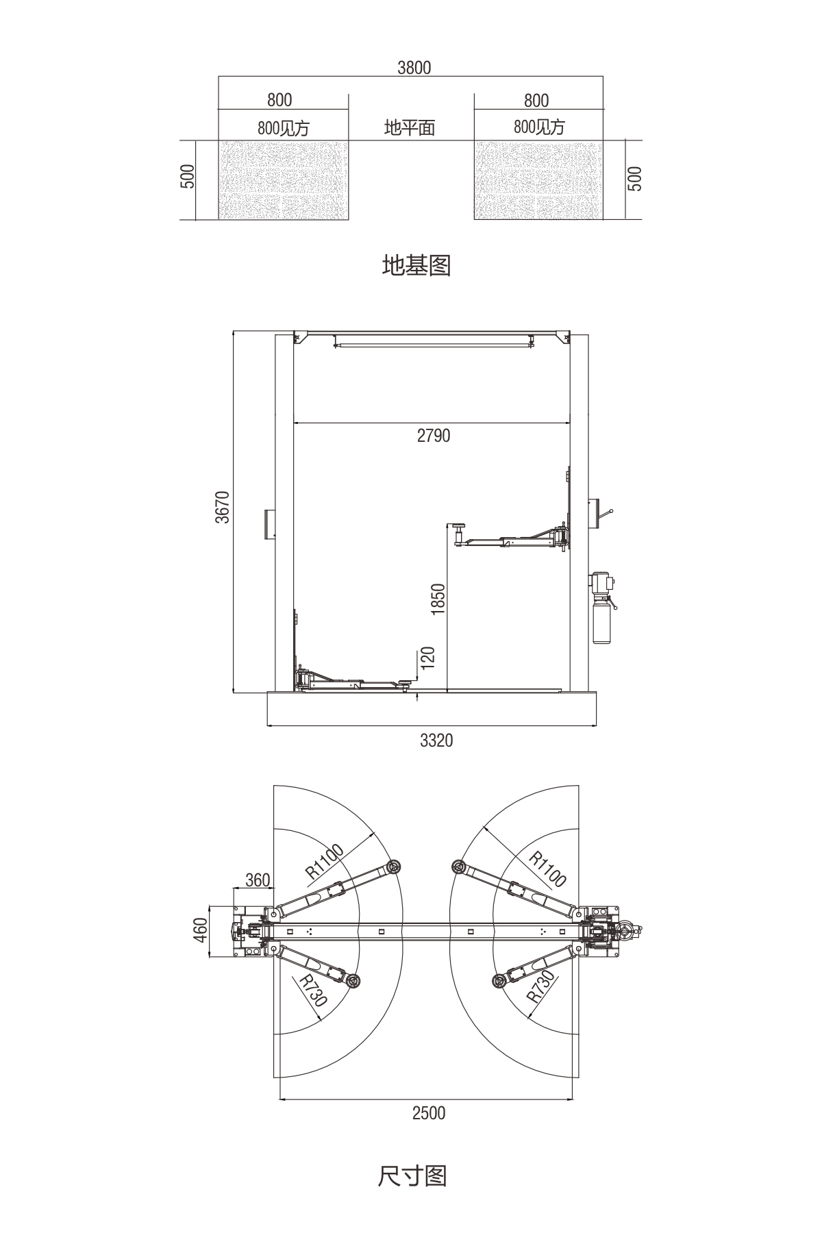 8.支臂采用兩節(jié)、三節(jié)設計,調(diào)節(jié)范圍更大,適合不同的汽車底盤,三節(jié)支臂選配安裝。